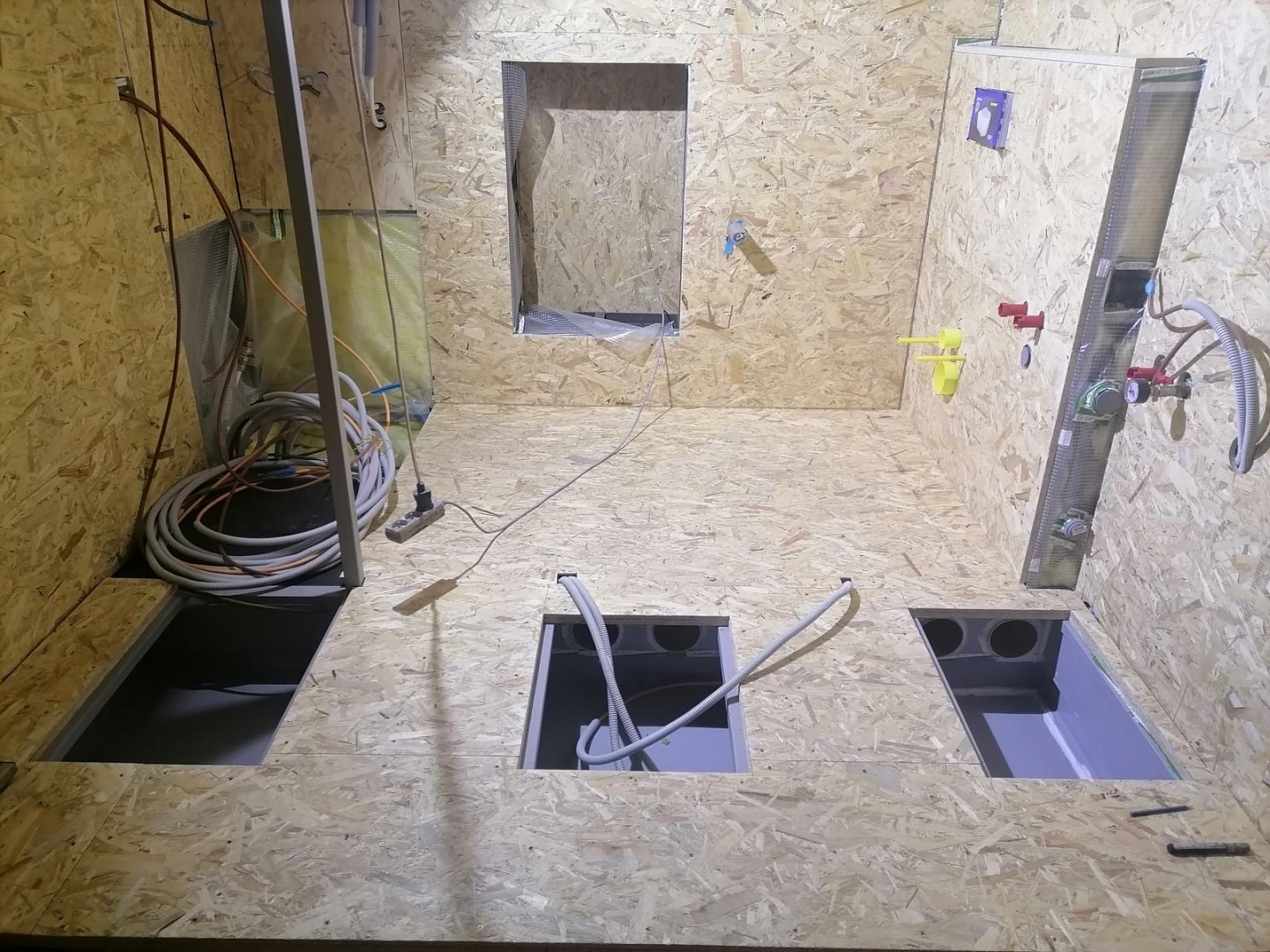 Zdroj vody nádrž, veřejná síť, vrt, vždy minimálně dva zdroje. Filtrace vody užitkové: filtr pískový, filtr uhlíkový, uv lampa. Voda pitná přes zmíněné filtry plus reverzní osmóza s mineralizátorem.