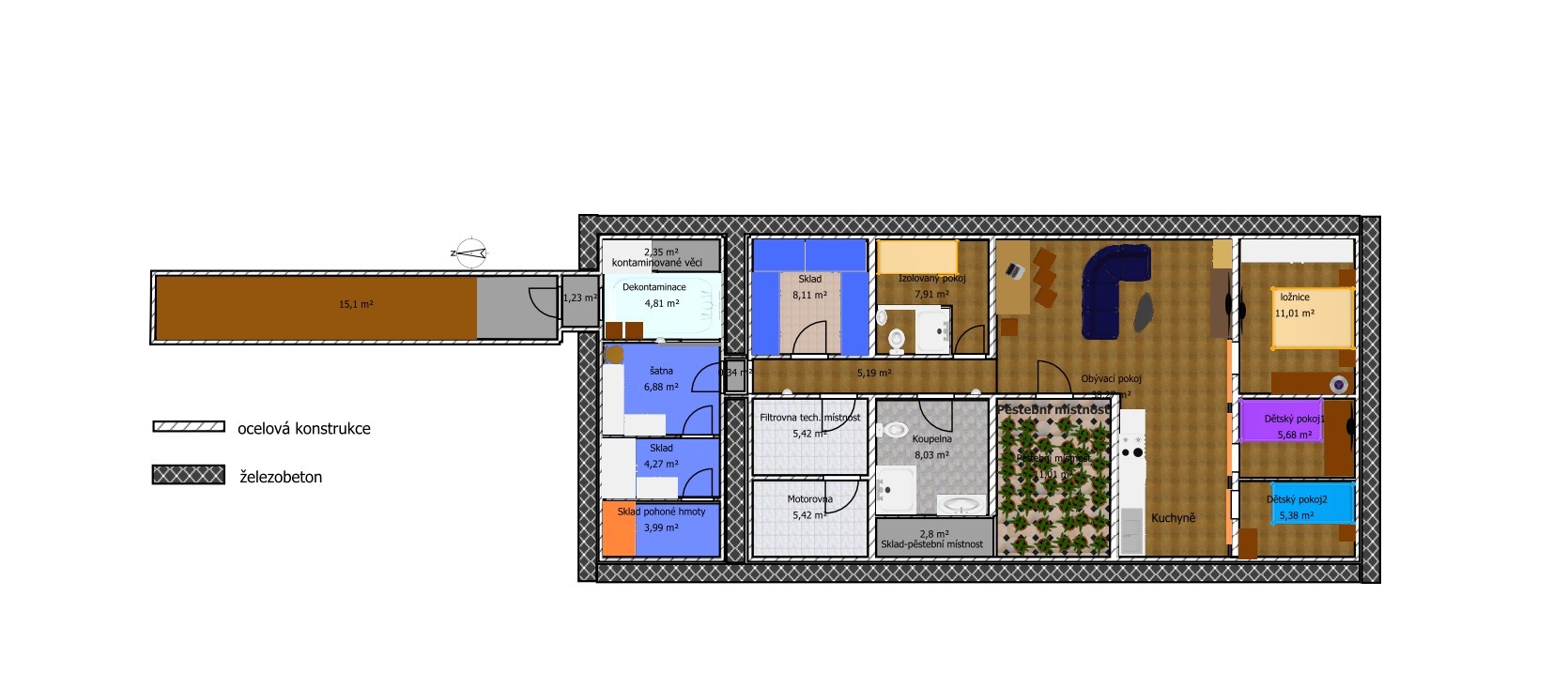 Ať už dojde k jakékoliv situaci – např. jaderný útok, válka, teroristický útok, dlouhodobý výpadek elektřiny, zemětřesení, povodně nebo třeba občanské nepokoje, kryty civilní obrany vám vždy poskytnou absolutní bezpečí. Ty naše mají navíc i příjemný interiér a dá se v nich bez problémů přebývat i po dobu měsíců. Součástí krytů jsou i sklady, motorovny, filtrovny atd. Jsou modulární, mohou tak být sestaveny i z více částí.