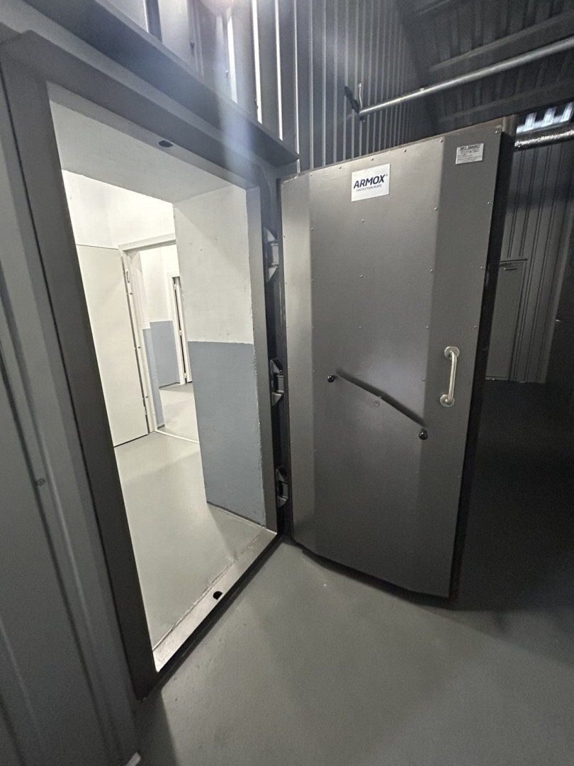 20cm silné dveře, tlakově odolné, se zajištěním zaviracích pák zevnítř