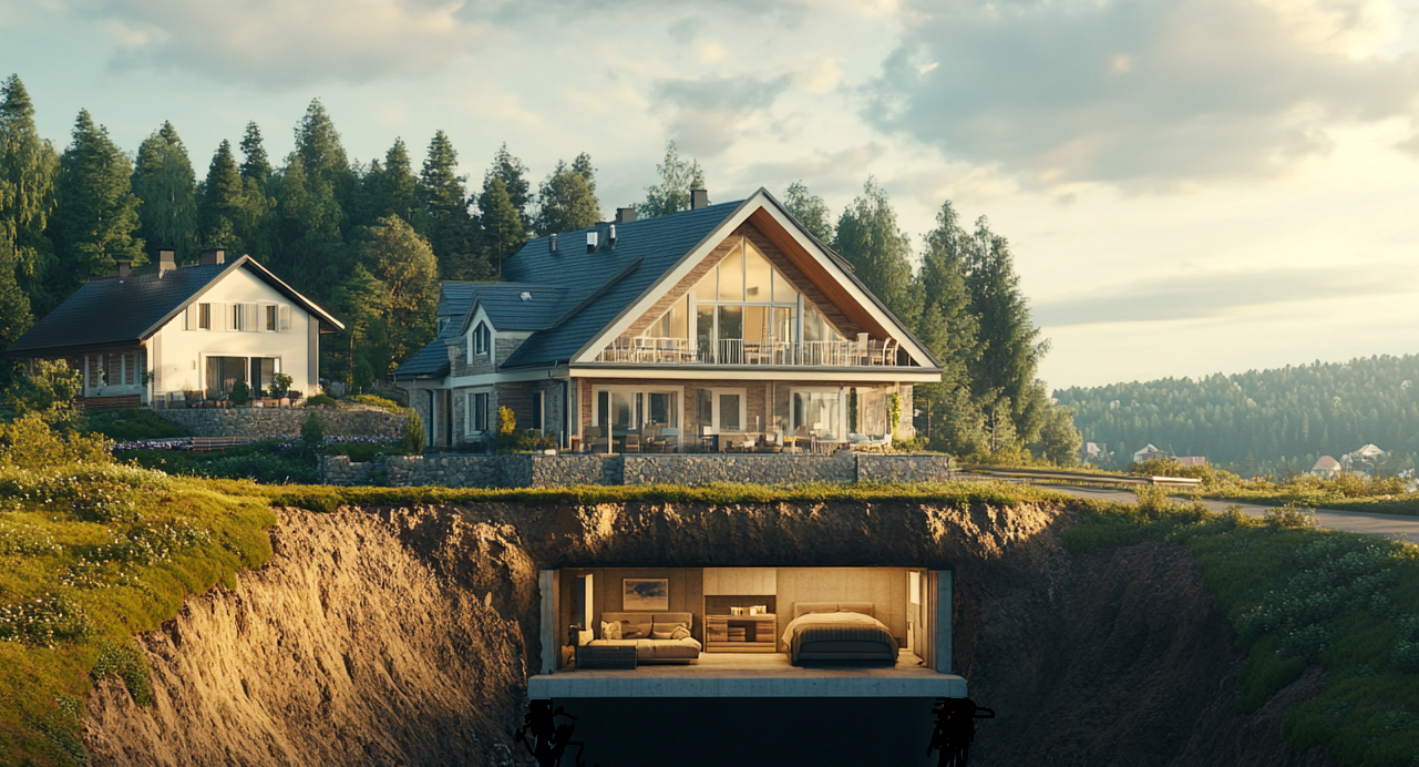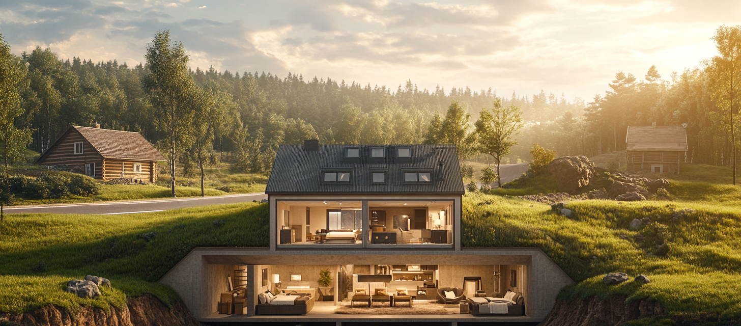 Při budování nového krytu máme více možností, kde může být umístěn. Nejvhodnější je však na pozemek vedle Vašeho domu. Doběhová vzdálenost z domu do krytu je ideálně co nejmenší, nejlépe se skrytým vstupem přímo z vašeho domu. Co dělat v případě, když není možnost umístit kryt na zahradu? Důvodů může být mnoho např. velikost zahrady, sousedi, či jiné okolnosti… Řešením je vystavět kryt přímo pod vaším domem. Jedná se o náročnější proces stavby protiatomového/protiživelného úkrytu. I s tímto typem výstavby krytu máme zkušenosti a jsme schopni ho realizovat.