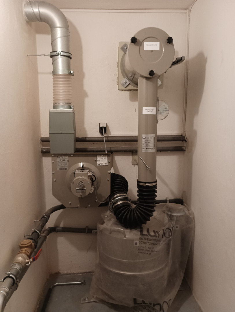 Technologie, bez které se neobejdeme je filtroventilační zařízení s NBC filtrem s možností ručního pohonu, v sestavě společně s přetlakovým ventilem s uzávěrem a ochranou proti tlakové vlně zvenčí až 3 BAR. Záložní zdroj elektrické energie volíme podle požadované doby jakou bychom měli trávit v úkrytu. Na kratší nám vystačí bateriové uložiště. Na delší je nutný generátor, ideálně dieselový vodou chlazený. Samozřejmě tomu musíte přizpůsobit elektrický rozvod v úkrytu i co se týče sání a výfuku generátoru. Gravitační kanalizace, která vyúsťuje v úkrytu, je potřeba tlakově zaslepit. Ze sociálního zařízení je odpad sveden do přečerpávací stanice dále přes zpětnou klapku a hlavní uzavírací ventil do země. Odpad vyveden ze země po zpětnou klapku v provedení ocel/nerez. Je-li v dosahu zdroj vody mimo veřejný řád je dobré ho využít. Při vhodně zvolené filtrační sestavě můžeme tuto vodu nadále využít jak užitkovou, tak i pitnou. Nevyskytuje-li se v dosahu žádný náhradní zdroj vody, můžeme si buď přímo v úkrytu nebo okolo vybudovat vrt. Nejlepší pojistkou však je zásoba vody v nádrži přímo v úkrytu. Samozřejmostí jsou dostatečné zásoby jídla, oblečení, provozního proviantu, léků, ochranných a obranných prostředků.